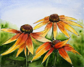 I had a fantastic time at Bloomin Artists this weekend, it is amazing how well organized and fantastic this is run. I thought I would have a hard time painting this weekend because you are on location and they were looking for 2 to 3 quick pieces per day from each artist. I normally paint very realistically, I knew that would not work for this event. I decided to use ink and watercolor for most of the pieces, allowing me to work quickly. Unfortunately I was so busy I forgot to take pictures of some of my completed works, but here are the ones I managed to get. With the ones I brought in ahead of time I submitted a total of 12 pieces, luckily all 12 were sold in the auction.