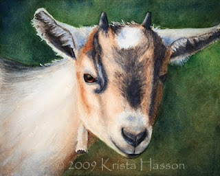 i am new signed up for what is krista painting today enjoy touring your blog. i am a retired senior ;73;self taught been painting since big enough to hold onto a brush with one hand.i'm sure your painting will keep your goat fresh in your memory forever.love viewing your work;makes me want to try harder for perfection.god bless you.