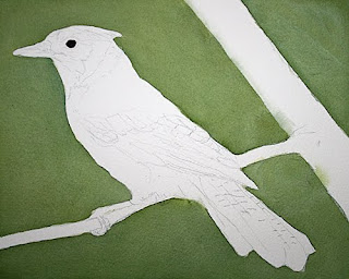 I started the foundation for the background with transparent yellow and then a glaze of sap + a little Cobalt. I am also working on a Gold finch and still working on some roses, I will post some of their progress later.