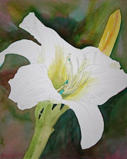 The start of a beautiful Pink Day Lily. Drawn out on Arches 140lb CP paper, with the center masked off.