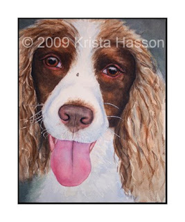 Finished Rosie this morning, mainly used burnt sienna and ultra blue for this entire painting, used a little cer. blue (eyes and white fur) and perm rose (tongue). Glazed over the back ground with ultra blue then paynes gray to tone it down (decided i did not like the green/blue that was there). Anyway off to work on my other 2, have a great day! Thanks for looking.